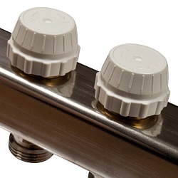 Коллектор из нержавеющей стали без расходомеров, с клапаном вып. воздуха и сливом STOUT 2 выхода