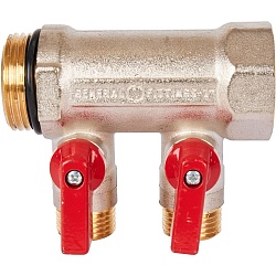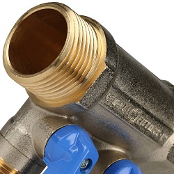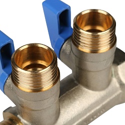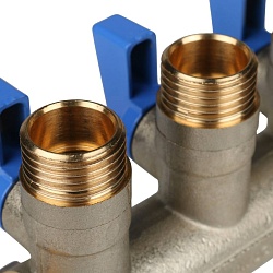 Коллекторный узел в сборе состоит из гребенки (коллектора) на подачу и на обратку. Также:
