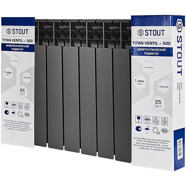 Радиатор биметаллический нижнее правое подключение STOUT TITAN VENTIL 500 10 секций (графит RAL 7024)